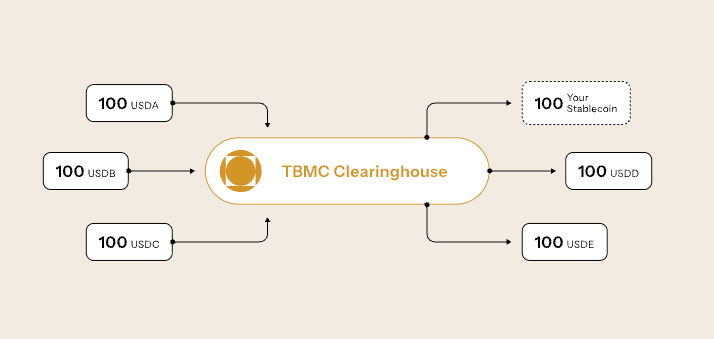 流動性プールやOTCデスクを経由せず、銀行パートナーと発行体が直接参加することで、ステーブルコインを同額のまま交換できるようにします。